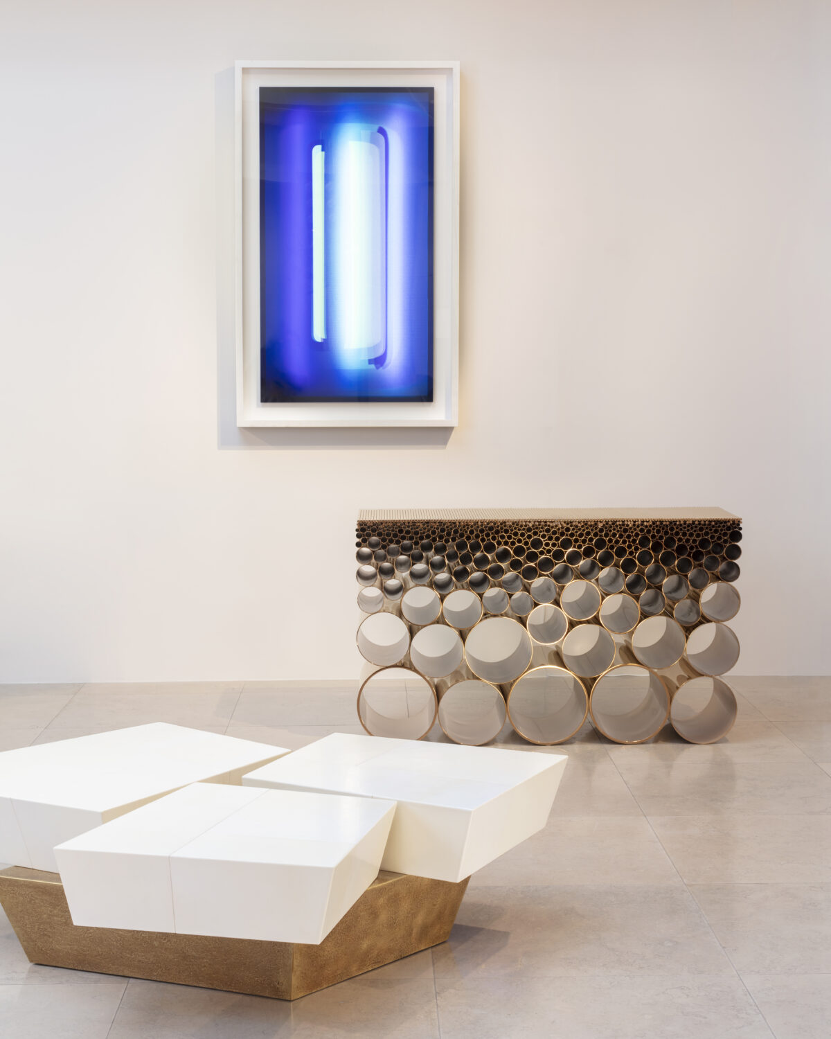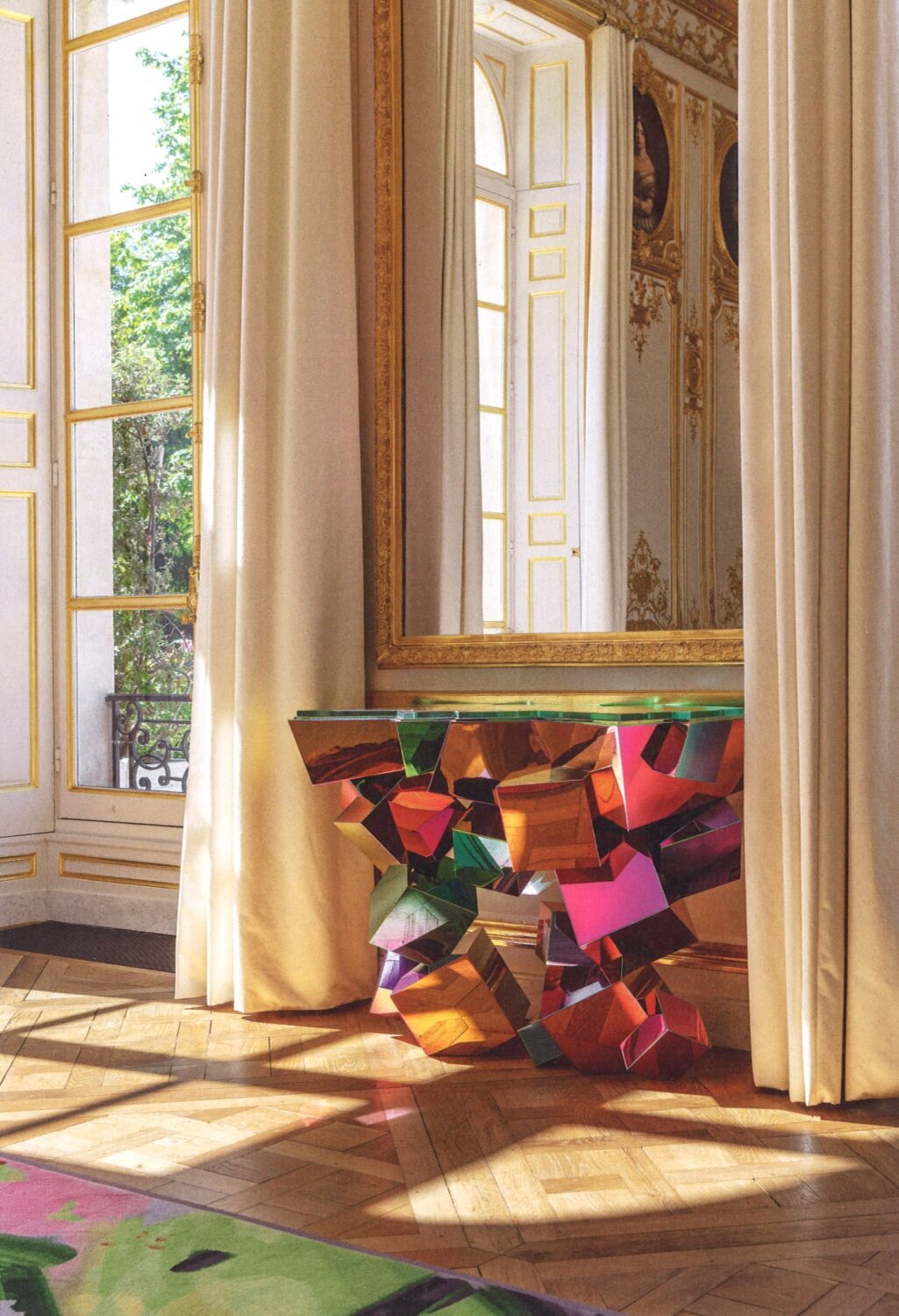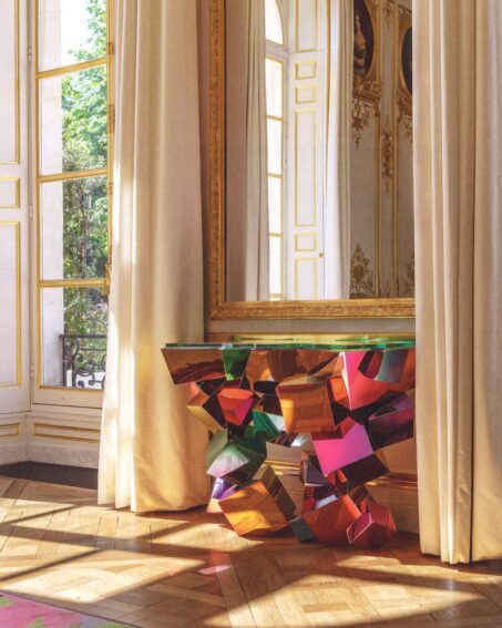 Ce livre explore l’histoire de trois résidences présidentielles dont le Palais de l’Elysée, pour lequel le Mobilier National a acquis de nouvelles oeuvres d’Hervé Van der Straeten: la Console Cristalloïde et la Console Psychose.