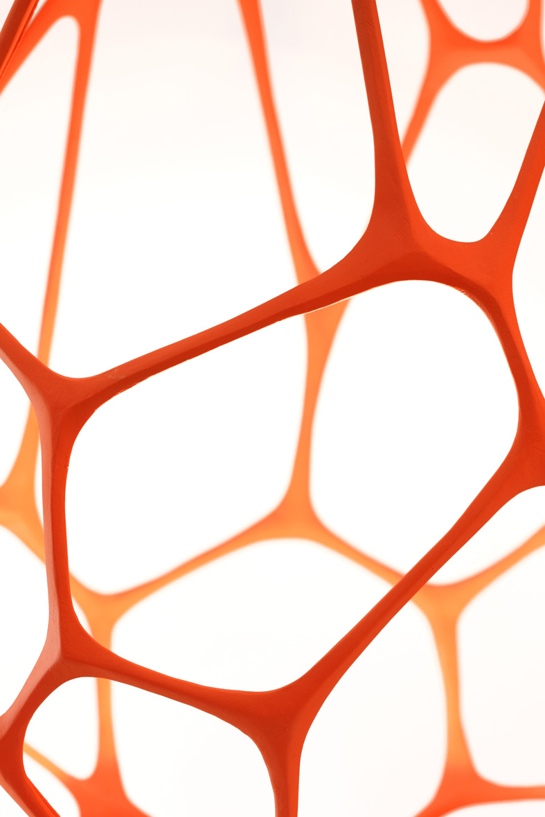 Both graphic and organic, this lacquered bronze chandelier astonishes the eye with its generous proportions, visual airiness, and the light captured in its expansive, sculptural network. It is proposed in small or large model.