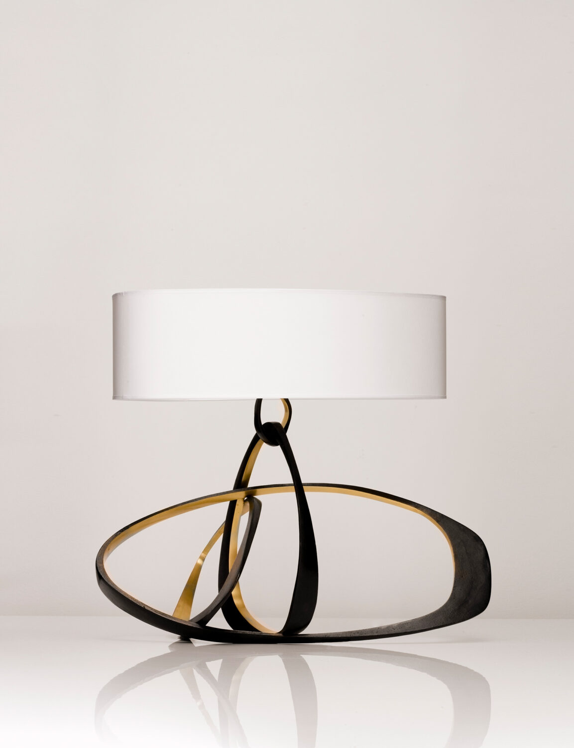 Pièce emblématique du designer, la lampe Volubile allie mouvement, asymétrie et enchevêtrement, tandis que le bronze à patine bicolore crée un jeu d’interactions entre opacité et brillance. Il s’agit ici du grand modèle.